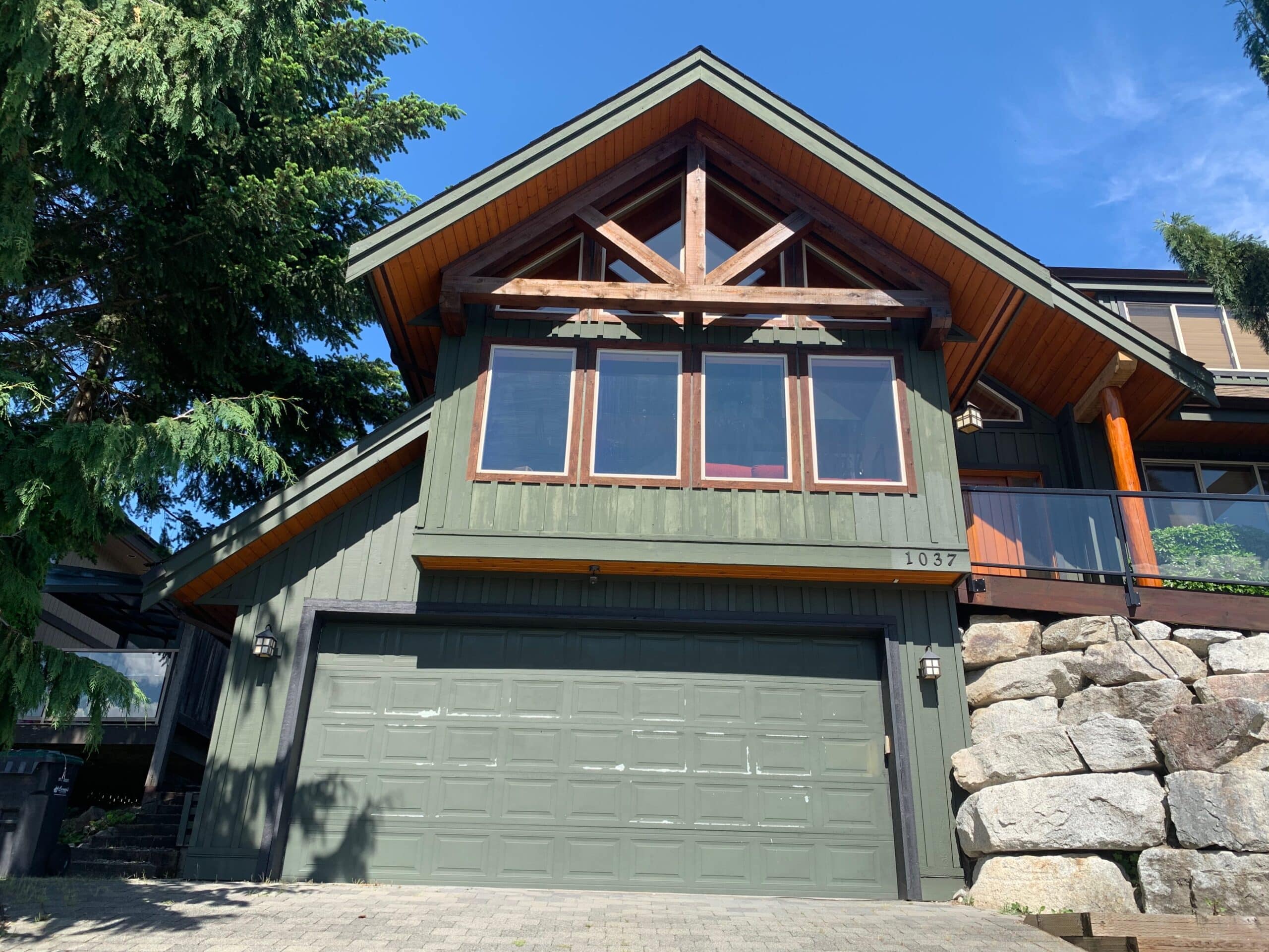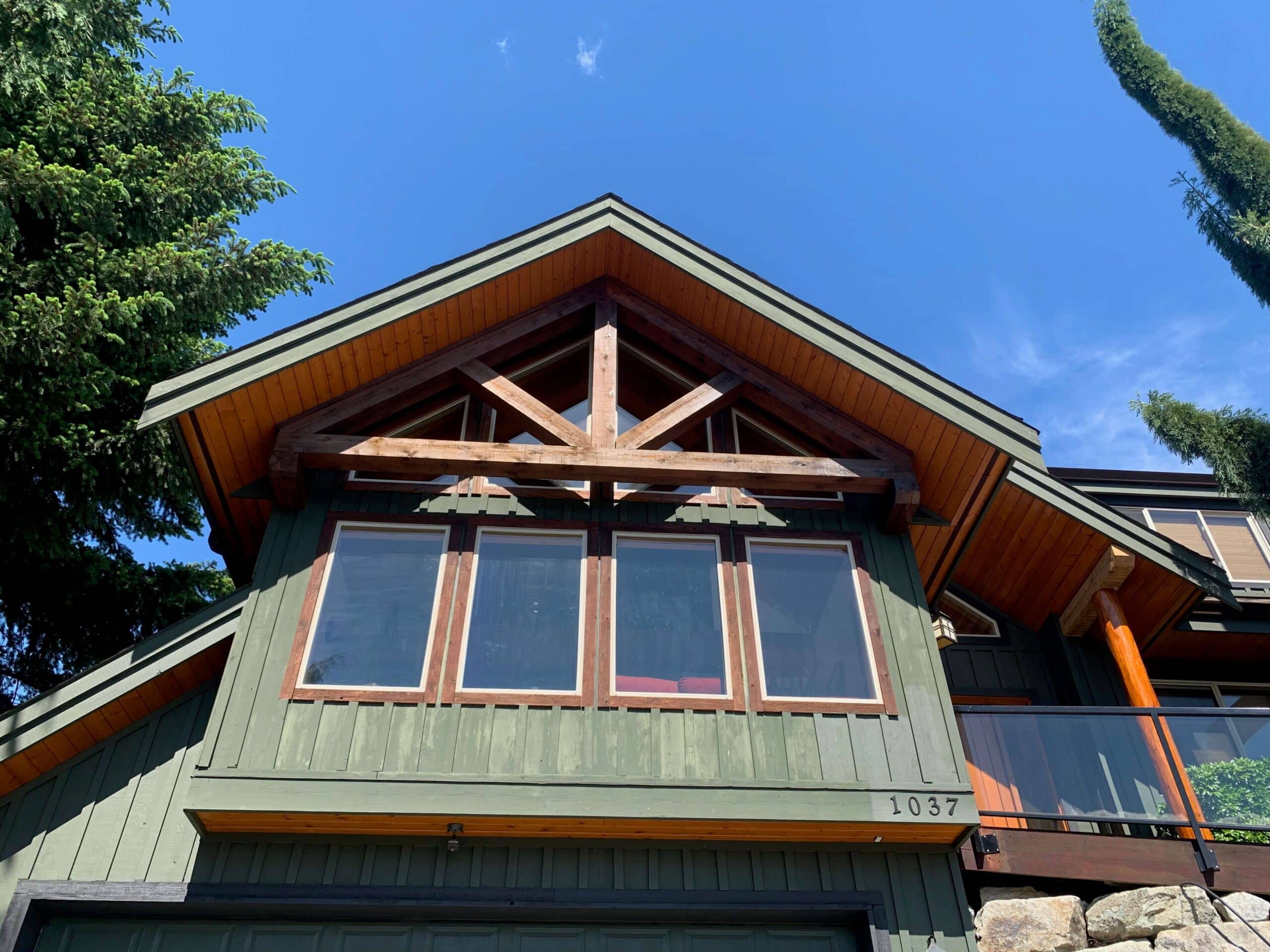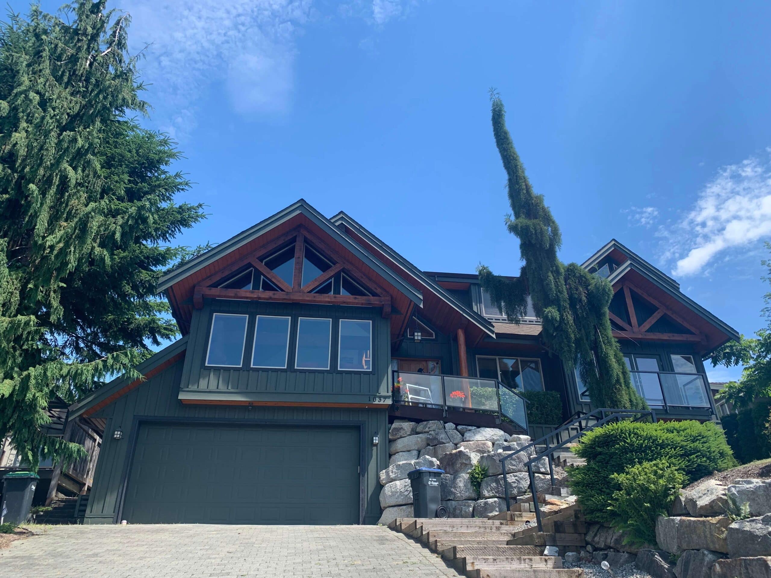 This stain project gave the home a strong and lasting finish that holds up well against Squamish’s mix of sun, wind, and rain. The balance of solid siding and natural wood accents gave the exterior a layered, elegant feel. More than just a color upgrade, this was a protective investment in the home’s curb appeal and long-term condition. From the clean window edges to the even-toned beams, every detail came together. Jonathan told us it looked better than he imagined.